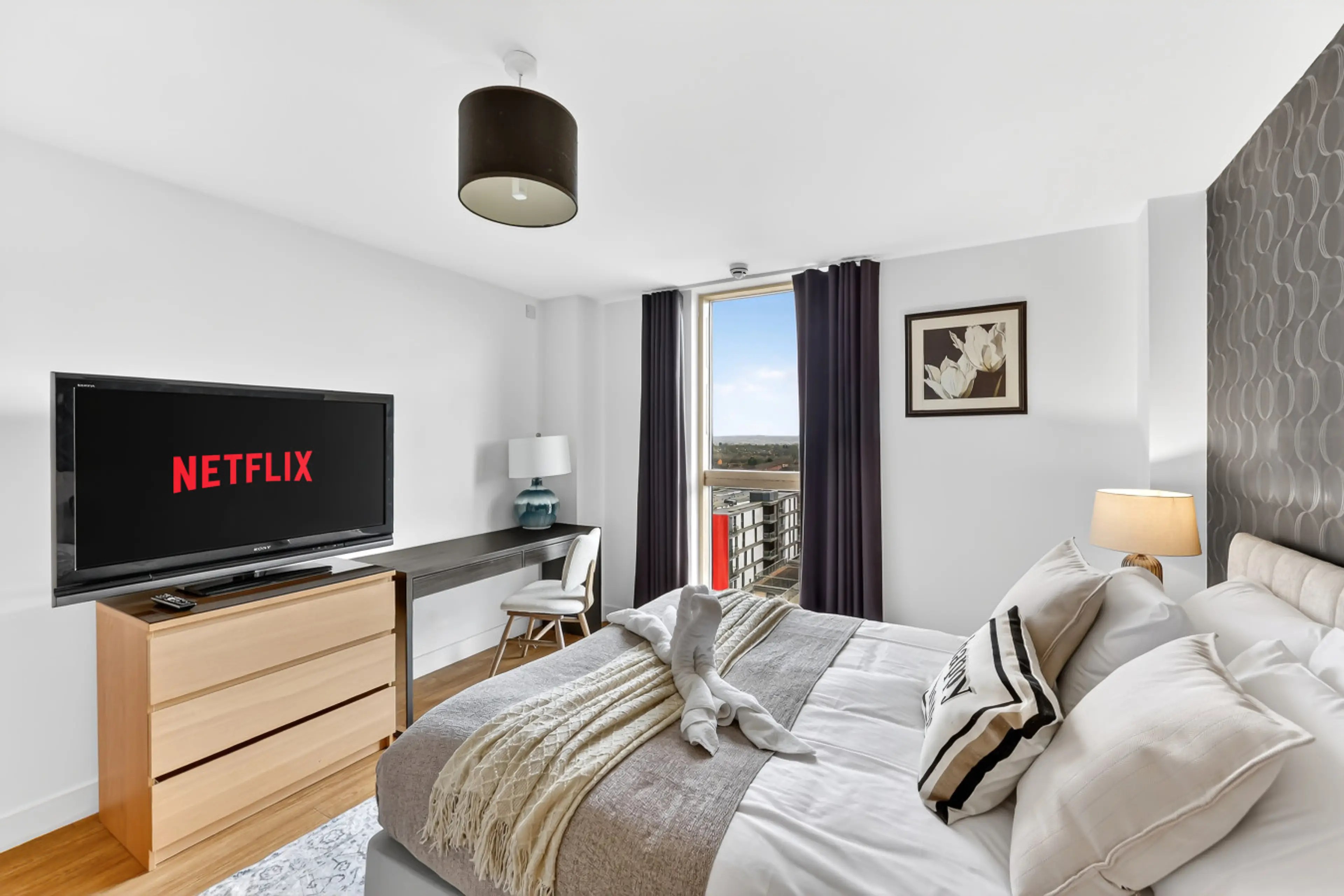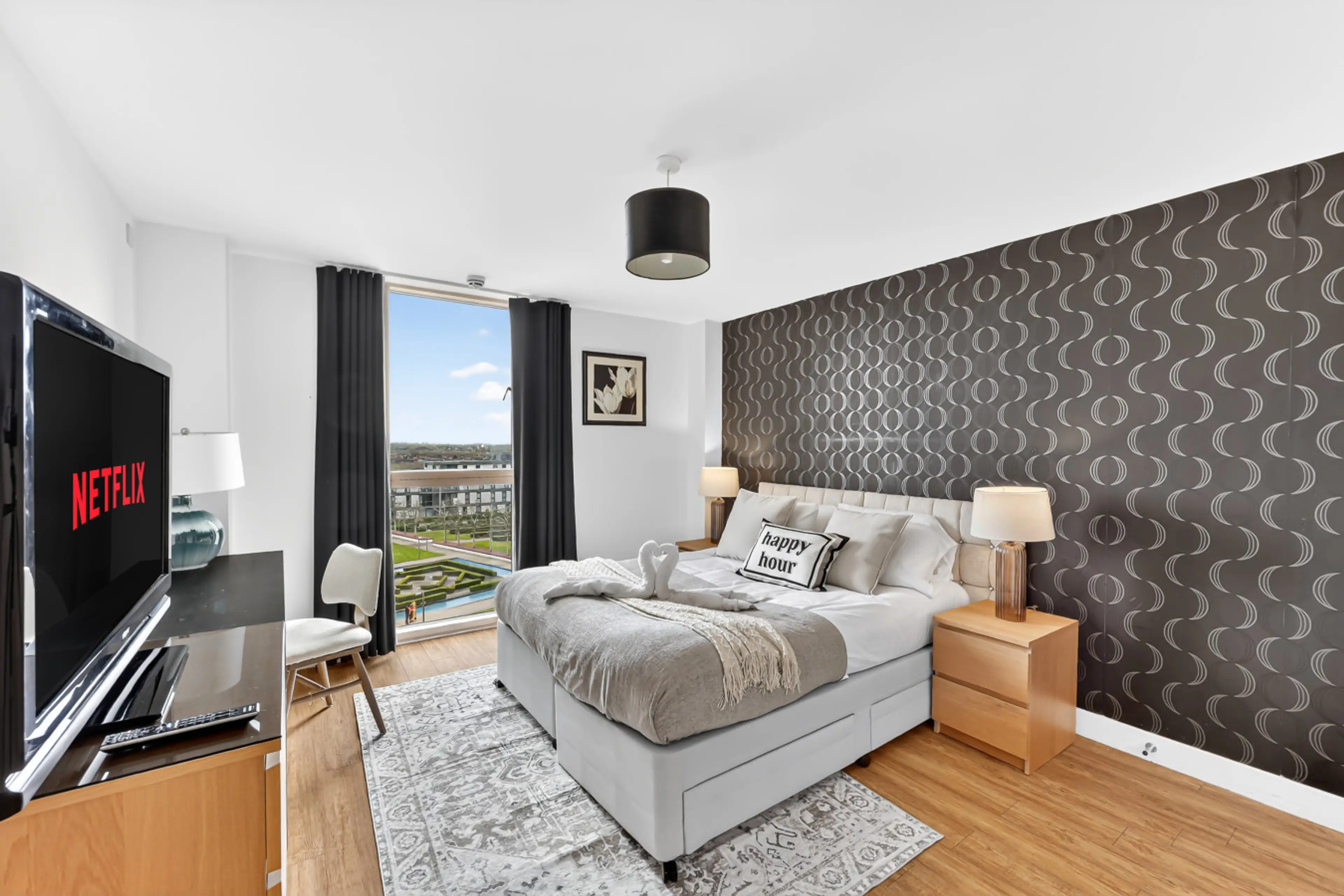 Enjoy stylish city living in this modern 3-bedroom, 2-bathroom apartment in the prestigious Vizion development. The apartment features bright open-plan living, a sleek fully equipped kitchen, contemporary bathrooms and a private balcony with impressive views. Guests also benefit from secure unde...